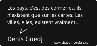 Les pays, c'est des conneries, ils n'existent que sur les cartes. Les villes, elles, existent vraiment...