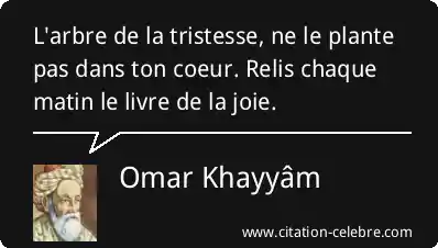 L'arbre de la tristesse, ne le plante pas dans ton coeur. Relis chaque matin le livre de la joie.