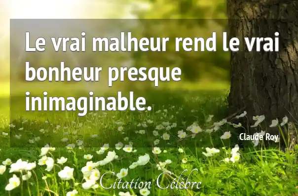 Le vrai malheur rend le vrai bonheur presque inimaginable.