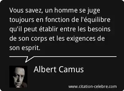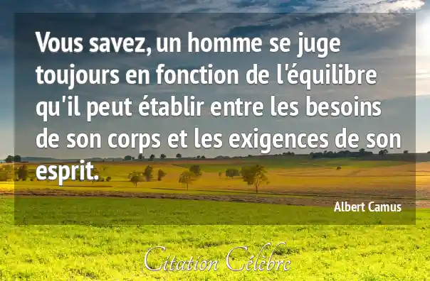 Vous savez, un homme se juge toujours en fonction de l'équilibre qu'il peut établir entre les besoins de son corps et les exigences de son esprit.