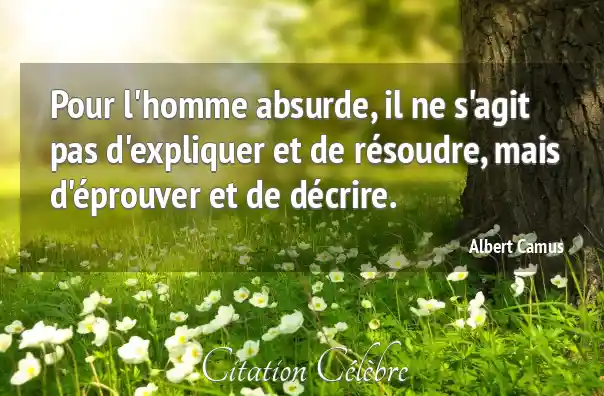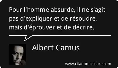 Pour l'homme absurde, il ne s'agit pas d'expliquer et de résoudre, mais d'éprouver et de décrire.