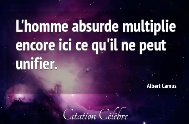 L'homme absurde multiplie encore ici ce qu'il ne peut unifier.