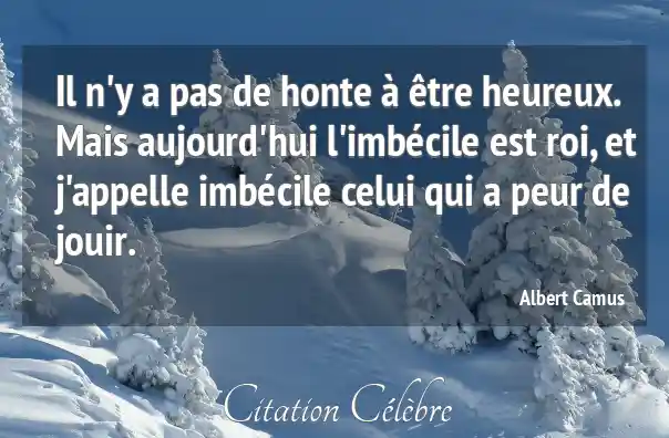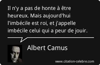 Il n'y a pas de honte à être heureux. Mais aujourd'hui l'imbécile est roi, et j'appelle imbécile celui qui a peur de jouir.