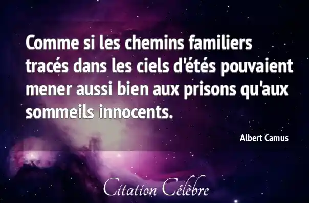 Comme si les chemins familiers tracés dans les ciels d'étés pouvaient mener aussi bien aux prisons qu'aux sommeils innocents.