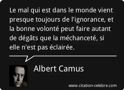 Le mal qui est dans le monde vient presque toujours de l'ignorance, et la bonne volonté peut faire autant de dégâts que la méchanceté, si elle n'est pas éclairée.