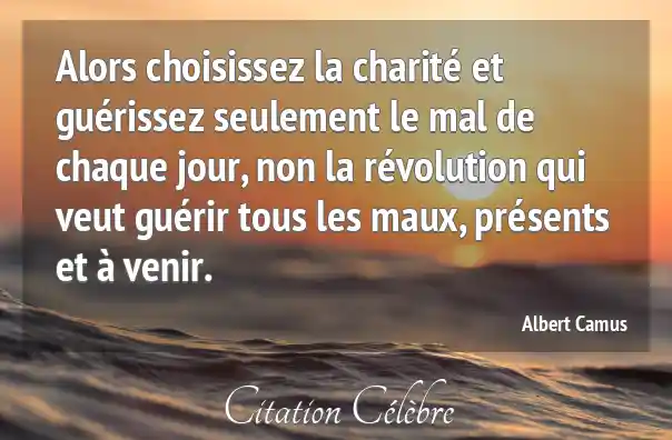 Alors choisissez la charité et guérissez seulement le mal de chaque jour, non la révolution qui veut guérir tous les maux, présents et à venir.