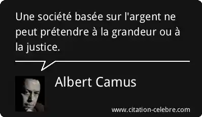 Albert Camus : Citation  d'Albert Camus sur Argent, Justice et Société