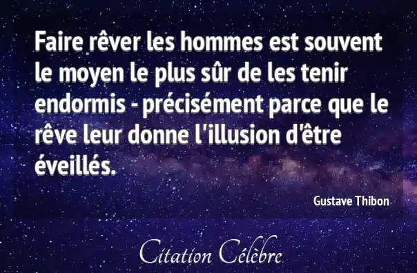 Faire rêver les hommes est souvent le moyen le plus sûr de les tenir endormis - précisément parce que le rêve leur donne l'illusion d'être éveillés.