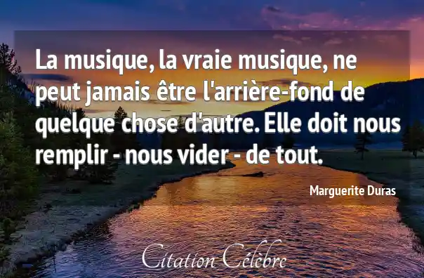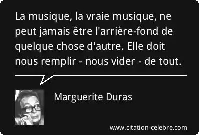 La musique, la vraie musique, ne peut jamais être l'arrière-fond de quelque chose d'autre. Elle doit nous remplir - nous vider - de tout.