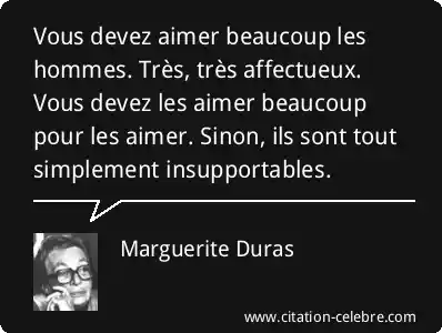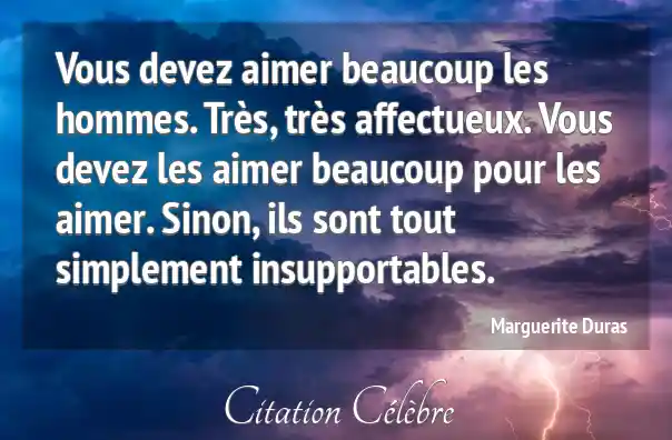 Vous devez aimer beaucoup les hommes. Très, très affectueux. Vous devez les aimer beaucoup pour les aimer. Sinon, ils sont tout simplement insupportables.