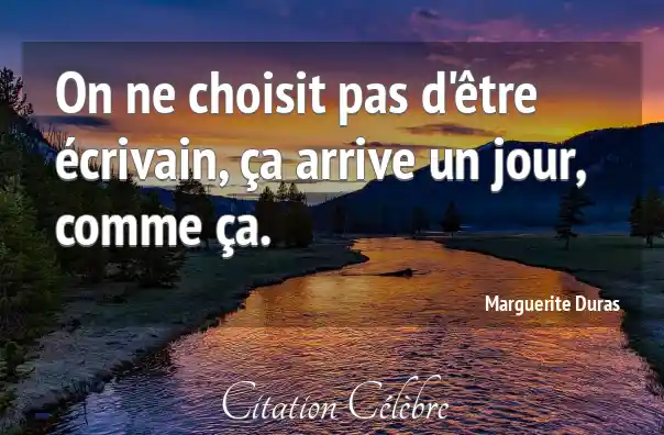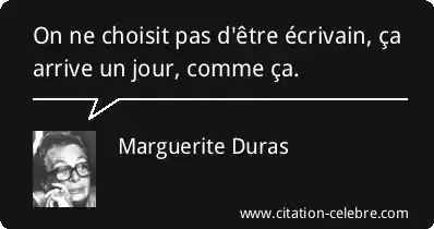 Citation Marguerite Duras jour : On ne choisit pas d'être écrivain, ça arrive un jour,...