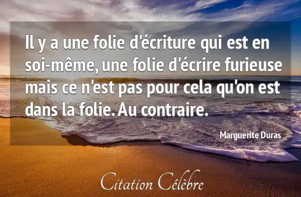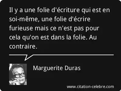 Il y a une folie d'écriture qui est en soi-même, une folie d'écrire furieuse mais ce n'est pas pour cela qu'on est dans la folie. Au contraire.