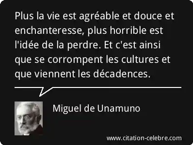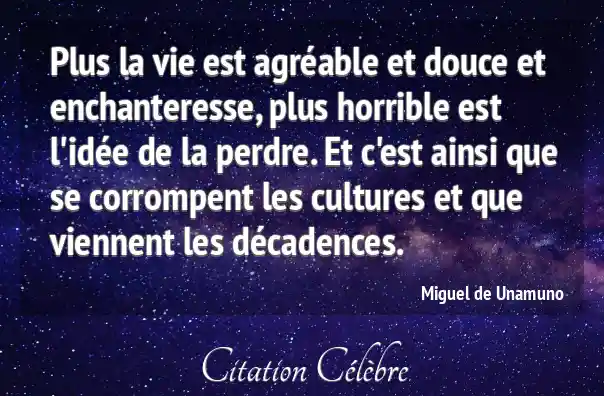 Plus la vie est agréable et douce et enchanteresse, plus horrible est l'idée de la perdre. Et c'est ainsi que se corrompent les cultures et que viennent les décadences.