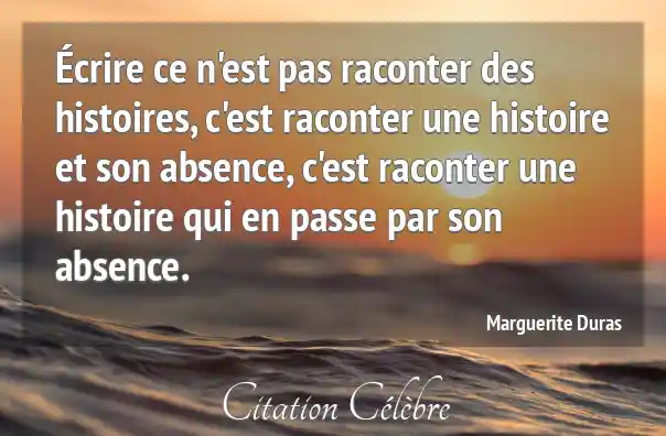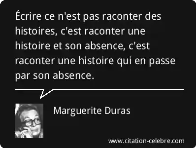 Écrire ce n'est pas raconter des histoires, c'est raconter une histoire et son absence, c'est raconter une histoire qui en passe par son absence.