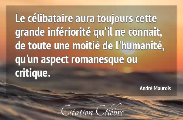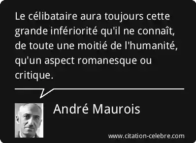 Le célibataire aura toujours cette grande infériorité qu'il ne connaît, de toute une moitié de l'humanité, qu'un aspect romanesque ou critique.