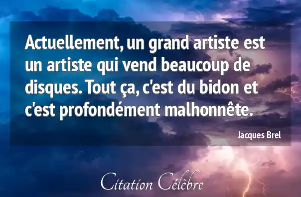 Actuellement, un grand artiste est un artiste qui vend beaucoup de disques. Tout ça, c'est du bidon et c'est profondément malhonnête.