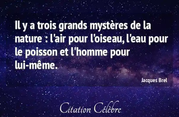 Il y a trois grands mystères de la nature : l'air pour l'oiseau, l'eau pour le poisson et l'homme pour lui-même.