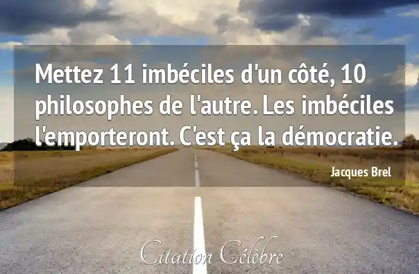 La victoire de la quantité sur la qualité : En opposant 11 "imbéciles" à 10 "philosophes", Jacques Brel dénonce le fait que le poids du nombre (les 11 votes) écrase la valeur de l'intelligence, de la sagesse ou de la réflexion (incarnée par les 10 philosophes).