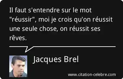 Il faut s'entendre sur le mot "réussir", moi je crois qu'on réussit une seule chose, on réussit ses rêves.
