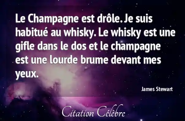 Le Champagne est drôle. Je suis habitué au whisky. Le whisky est une gifle dans le dos et le champagne est une lourde brume devant mes yeux.