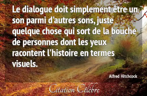 Le dialogue doit simplement être un son parmi d'autres sons, juste quelque chose qui sort de la bouche de personnes dont les yeux racontent l'histoire en termes visuels.