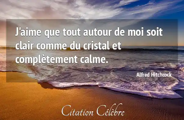 J'aime que tout autour de moi soit clair comme du cristal et complètement calme.