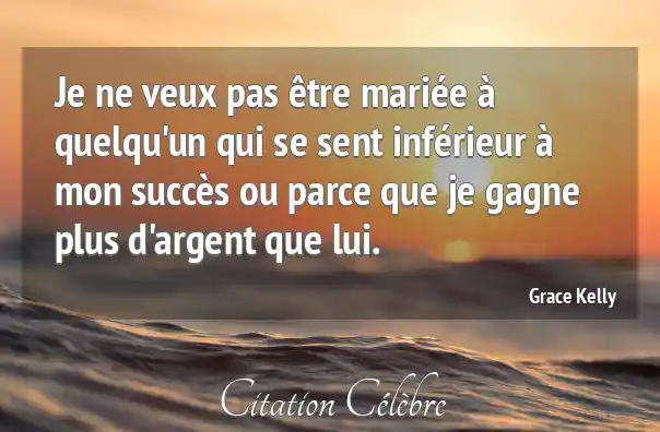 Je ne veux pas être mariée à quelqu'un qui se sent inférieur à mon succès ou parce que je gagne plus d'argent que lui.