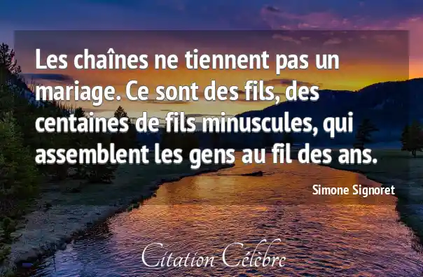 Les chaînes ne tiennent pas un mariage. Ce sont des fils, des centaines de fils minuscules, qui assemblent les gens au fil des ans.