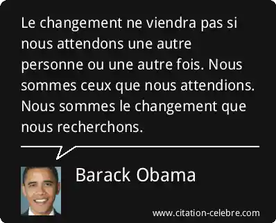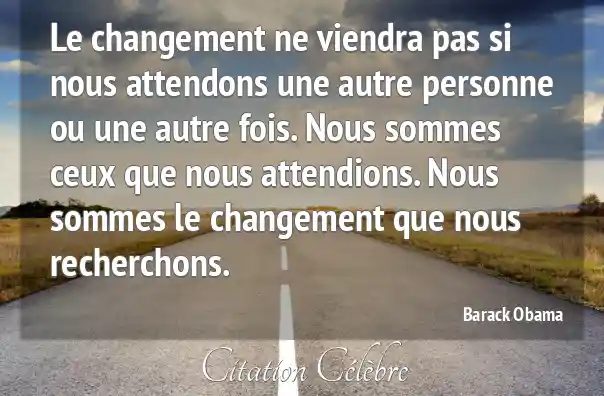 Le changement ne viendra pas si nous attendons une autre personne ou une autre fois. Nous sommes ceux que nous attendions. Nous sommes le changement que nous recherchons.