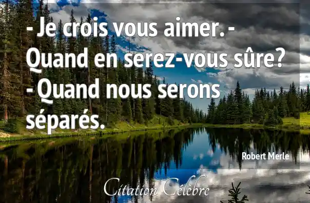 - Je crois vous aimer. - Quand en serez-vous sûre? - Quand nous serons séparés.
