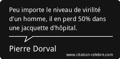 Peu importe le niveau de virilité d'un homme, il en perd 50% dans une jacquette d'hôpital.