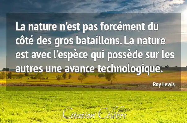 La nature n'est pas forcément du côté des gros bataillons. La nature est avec l'espèce qui possède sur les autres une avance technologique.