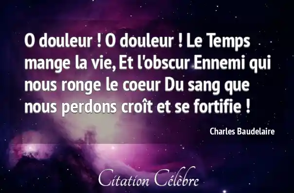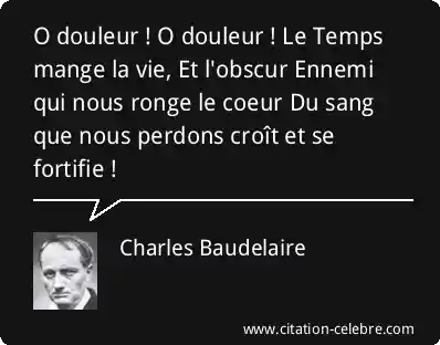 O douleur ! O douleur ! Le Temps mange la vie, Et l'obscur Ennemi qui nous ronge le coeur Du sang que nous perdons croît et se fortifie !