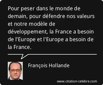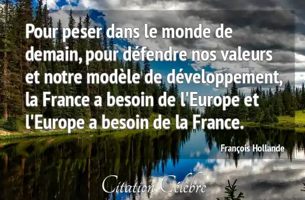 Pour peser dans le monde de demain, pour défendre nos valeurs et notre modèle de développement, la France a besoin de l'Europe et l'Europe a besoin de la France.