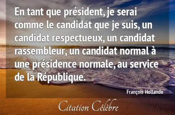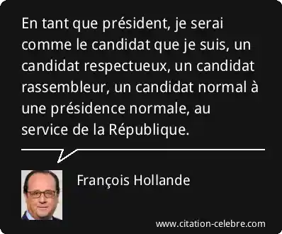 En tant que président, je serai comme le candidat que je suis, un candidat respectueux, un candidat rassembleur, un candidat normal à une présidence normale, au service de la République.