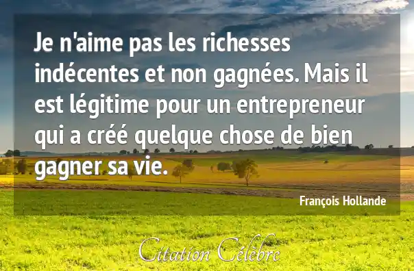 Je n'aime pas les richesses indécentes et non gagnées. Mais il est légitime pour un entrepreneur qui a créé quelque chose de bien gagner sa vie.