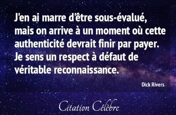 J'en ai marre d'être sous-évalué, mais on arrive à un moment où cette authenticité devrait finir par payer. Je sens un respect à défaut de véritable reconnaissance.