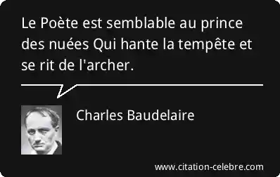 Le Poète est semblable au prince des nuées Qui hante la tempête et se rit de l'archer.
