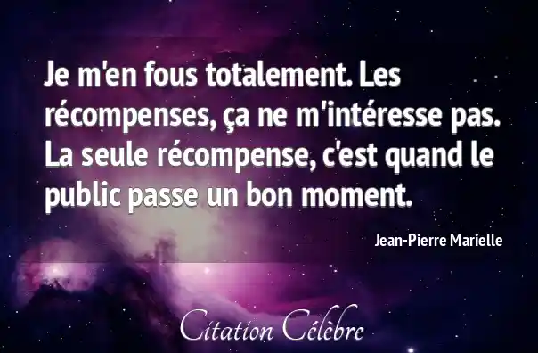 Je m'en fous totalement. Les récompenses, ça ne m'intéresse pas. La seule récompense, c'est quand le public passe un bon moment.