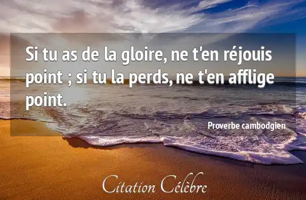 Si tu as de la gloire, ne t'en réjouis point ; si tu la perds, ne t'en afflige point.