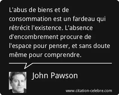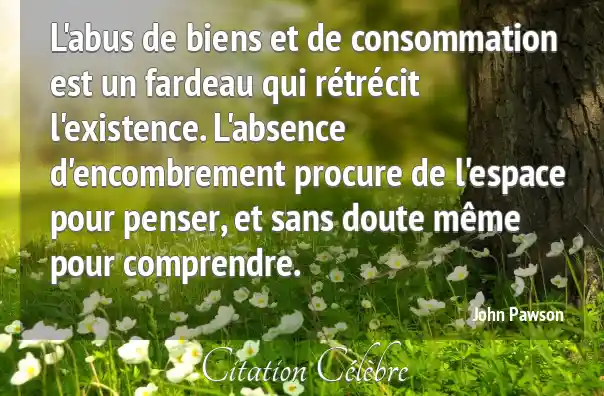 L'abus de biens et de consommation est un fardeau qui rétrécit l'existence. L'absence d'encombrement procure de l'espace pour penser, et sans doute même pour comprendre.