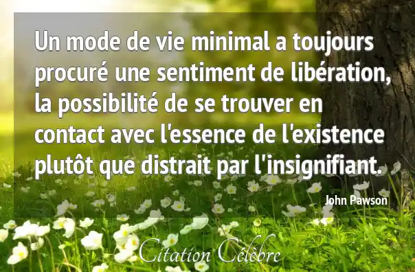 Un mode de vie minimal a toujours procuré une sentiment de libération, la possibilité de se trouver en contact avec l'essence de l'existence plutôt que distrait par l'insignifiant.