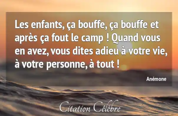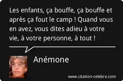 Les enfants, ça bouffe, ça bouffe et après ça fout le camp ! Quand vous en avez, vous dites adieu à votre vie, à votre personne, à tout !