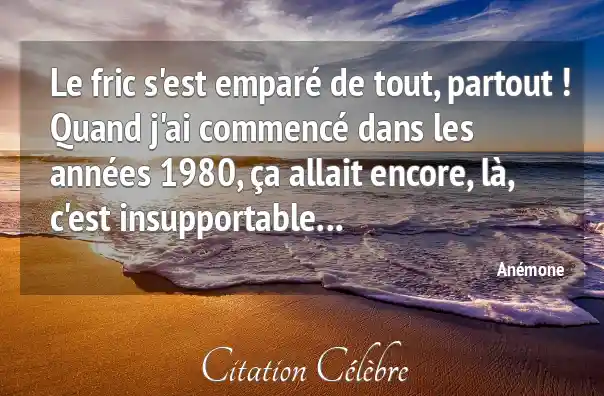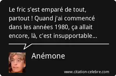 Le fric s'est emparé de tout, partout ! Quand j'ai commencé dans les années 1980, ça allait encore, là, c'est insupportable...