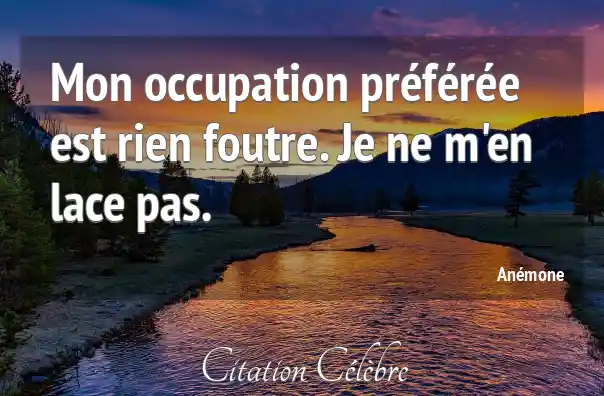 Mon occupation préférée est rien foutre. Je ne m'en lace pas.