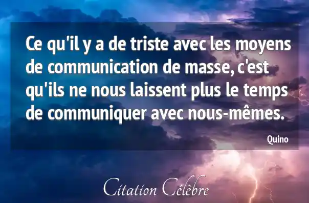 Ce qu'il y a de triste avec les moyens de communication de masse, c'est qu'ils ne nous laissent plus le temps de communiquer avec nous-mêmes.