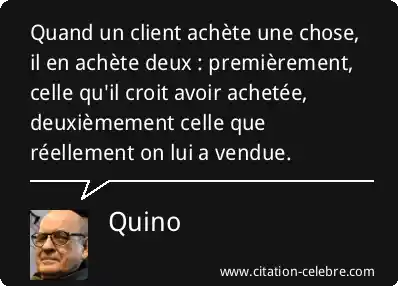 Quand un client achète une chose, il en achète deux : premièrement, celle qu'il croit avoir achetée, deuxièmement celle que réellement on lui a vendue.