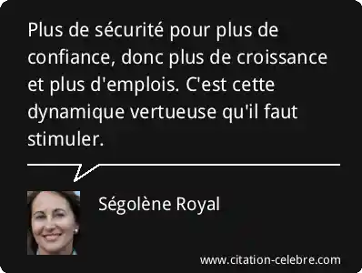 Plus de sécurité pour plus de confiance, donc plus de croissance et plus d'emplois. C'est cette dynamique vertueuse qu'il faut stimuler.