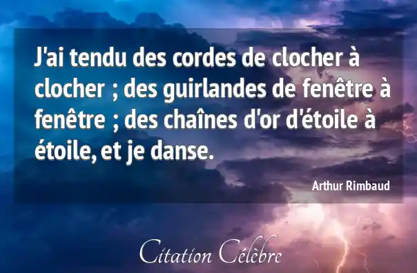 J'ai tendu des cordes de clocher à clocher ; des guirlandes de fenêtre à fenêtre ; des chaînes d'or d'étoile à étoile, et je danse.