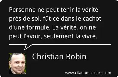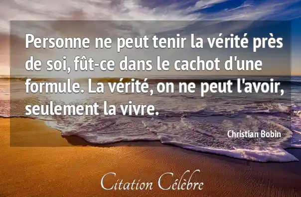 Personne ne peut tenir la vérité près de soi, fût-ce dans le cachot d'une formule. La vérité, on ne peut l'avoir, seulement la vivre.